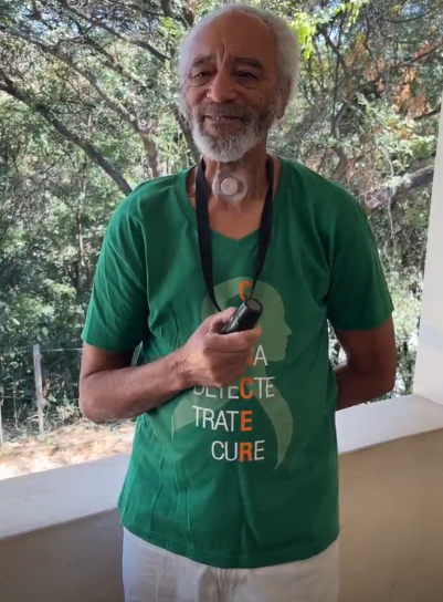 Um dos pacientes laringectomizados tratados pelo Baleia é Nilton Eustáquio, de 74 anos. Ele descobriu um câncer no pescoço em 2017 e, depois do tratamento, passou dois anos sem falar. O sofrimento e a dificuldade de se comunicar diminuíram após a conquista da laringe eletrônica, que permitiu que votasse a vocalizar e socializar com as pessoas.